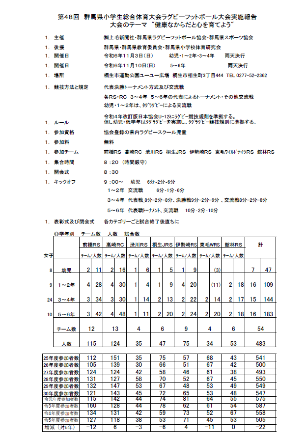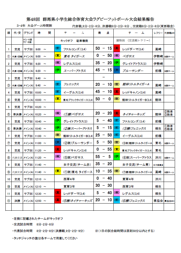 第48回 群馬県小学生総合体育大会ラグビーフットボール大会