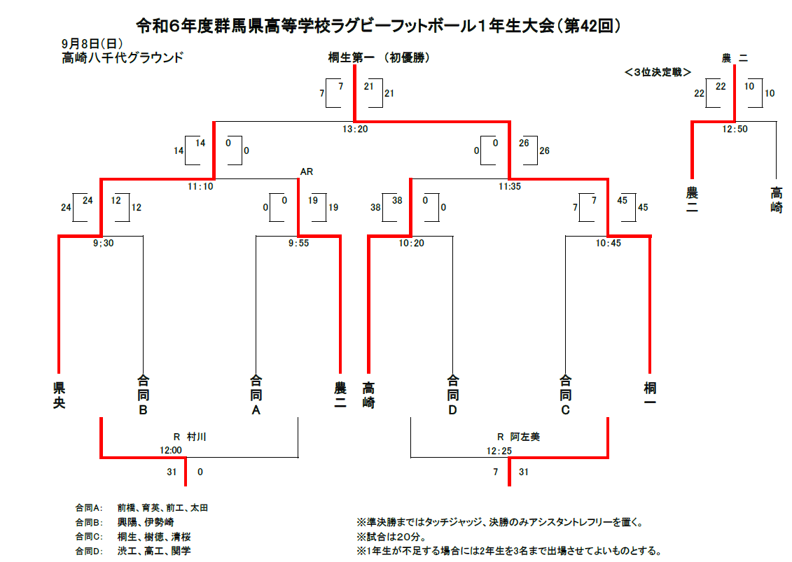 HOME 県協会とは お知らせ » ニュース ニュース一覧 試合結果 facebook » 公式 チケット販売 大学 委員会 » ジュニア 高校 大学 クラブ社会人 競技 コーチ 普及育成 総務 メディカル 安全対策 レフリー アセッサー 強化セレクション 競技場 チケット お問い合わせ 住所 電話 メール 令和6年度群馬県高等学校ラグビーフットボール1年生大会 八千代での観戦についてサイクリングロードでの観戦、ビデオ撮影等はご遠慮ください。 何卒、ご理解の程よろしくお願いいたします。