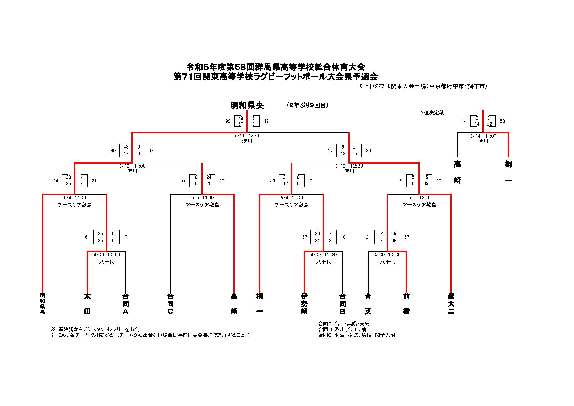HOME 県協会とは お知らせ » ニュース ニュース一覧 試合結果 facebook » 公式 チケット販売 大学 委員会 » ジュニア 高校 大学 クラブ社会人 競技 コーチ 普及育成 総務 メディカル 安全対策 レフリー アセッサー 強化セレクション 競技場 チケット お問い合わせ 住所 電話 メール 令和5年度第58回群馬県高等学校総合体育大会 第71回関東高等学校ラグビーフットボール大会県予選会