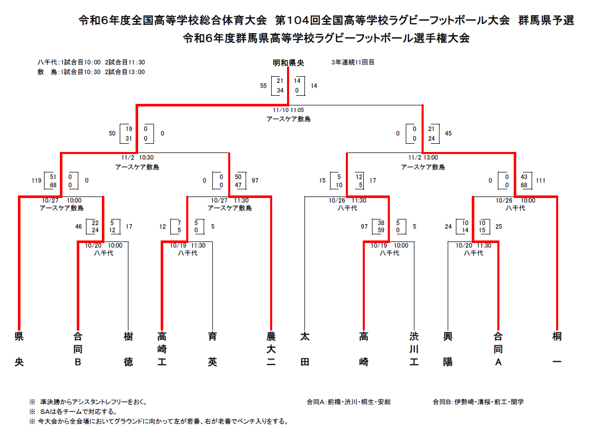 HOME 県協会とは お知らせ » ニュース ニュース一覧 試合結果 facebook » 公式 チケット販売 大学 委員会 » ジュニア 高校 大学 クラブ社会人 競技 コーチ 普及育成 総務 メディカル 安全対策 レフリー アセッサー 強化セレクション 競技場 チケット お問い合わせ 住所 電話 メール 令和6年度全国高等学校総合体育大会 第104回全国高等学校ラグビーフットボール大会 群馬県予選 令和6年度群馬県高等学校ラグビーフットボール選手権大会 八千代での観戦についてサイクリングロードでの観戦、ビデオ撮影等はご遠慮ください。 何卒、ご理解の程よろしくお願いいたします。