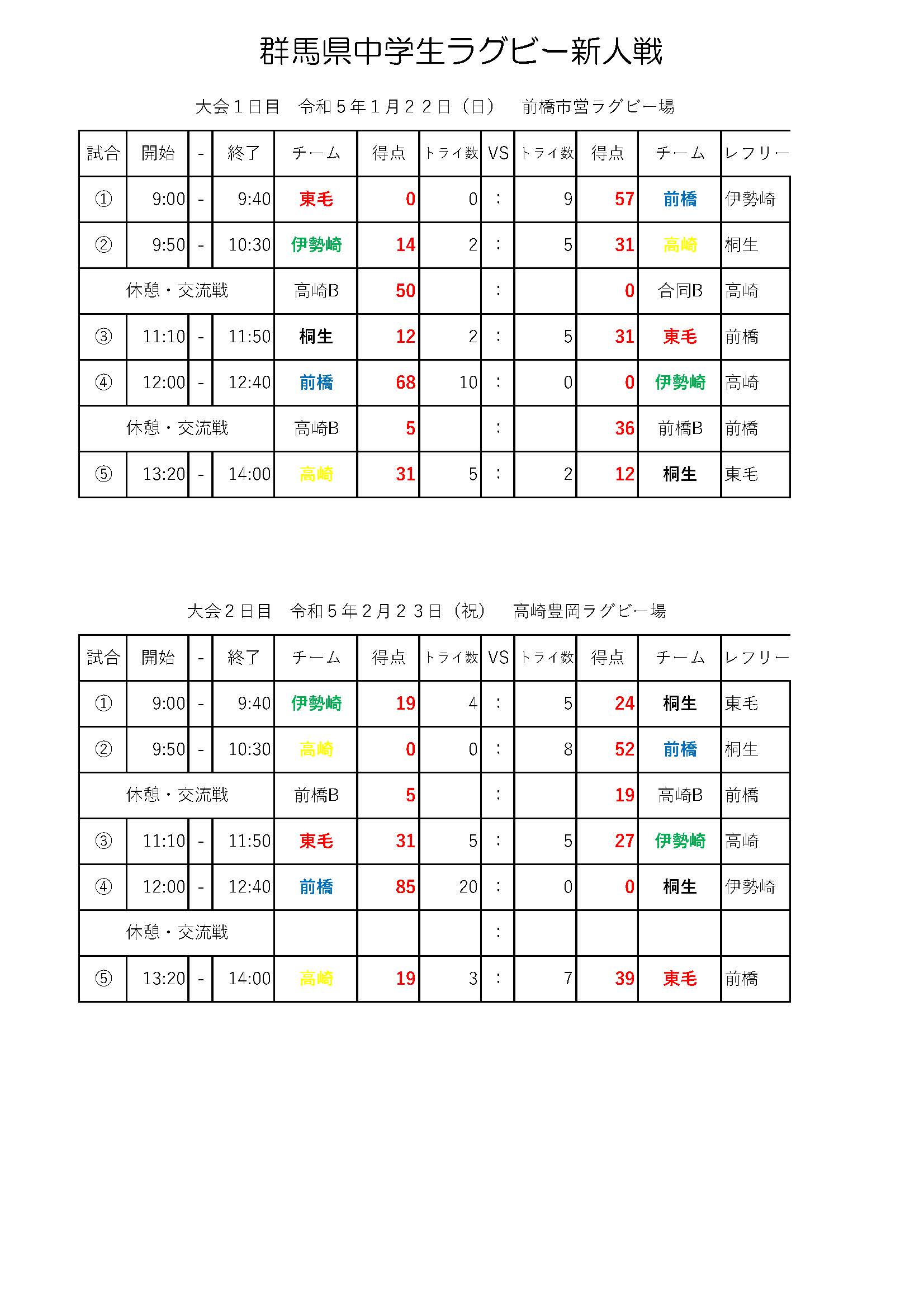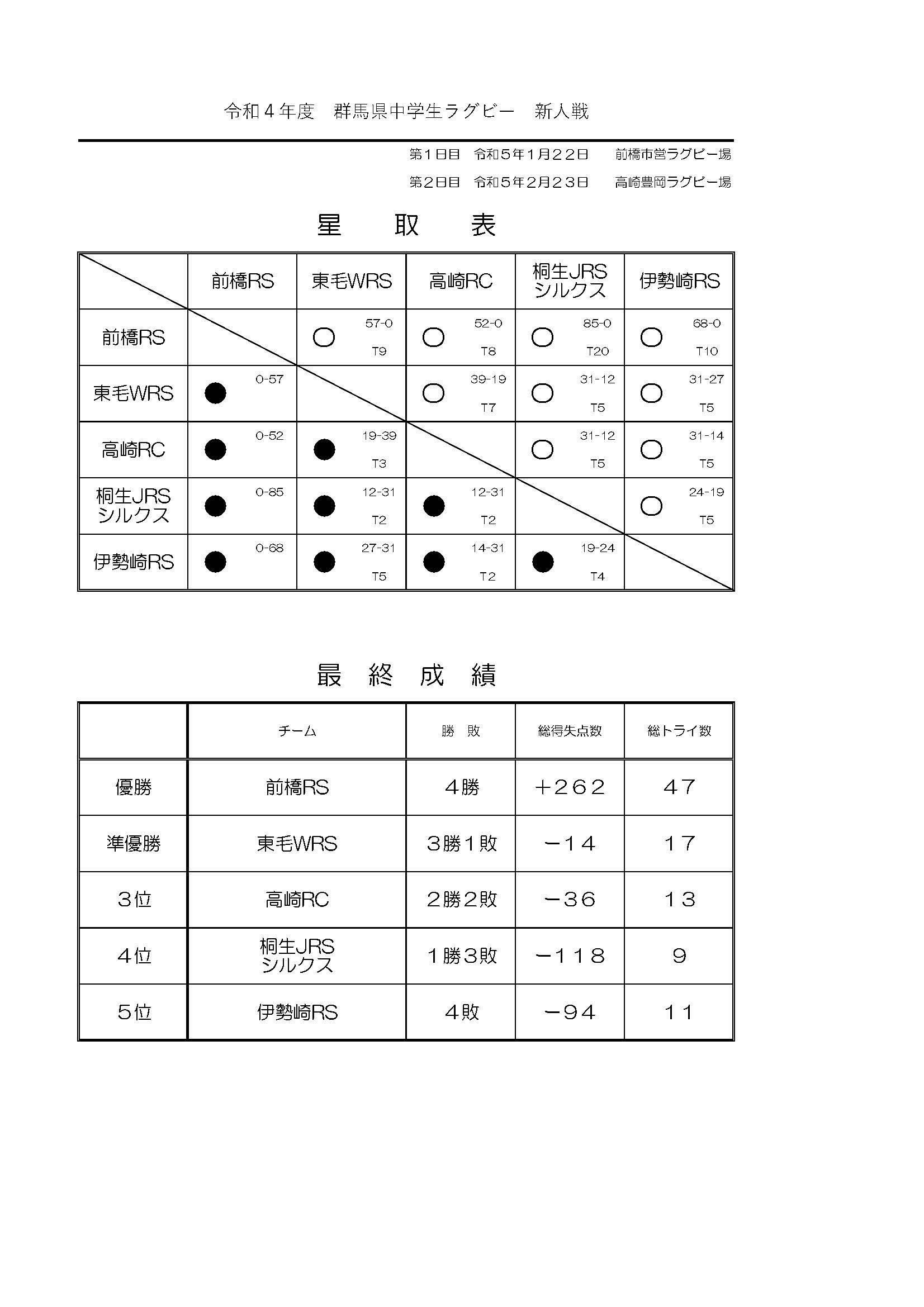 ジュニア|群馬県内中学生新設大会(新人戦)