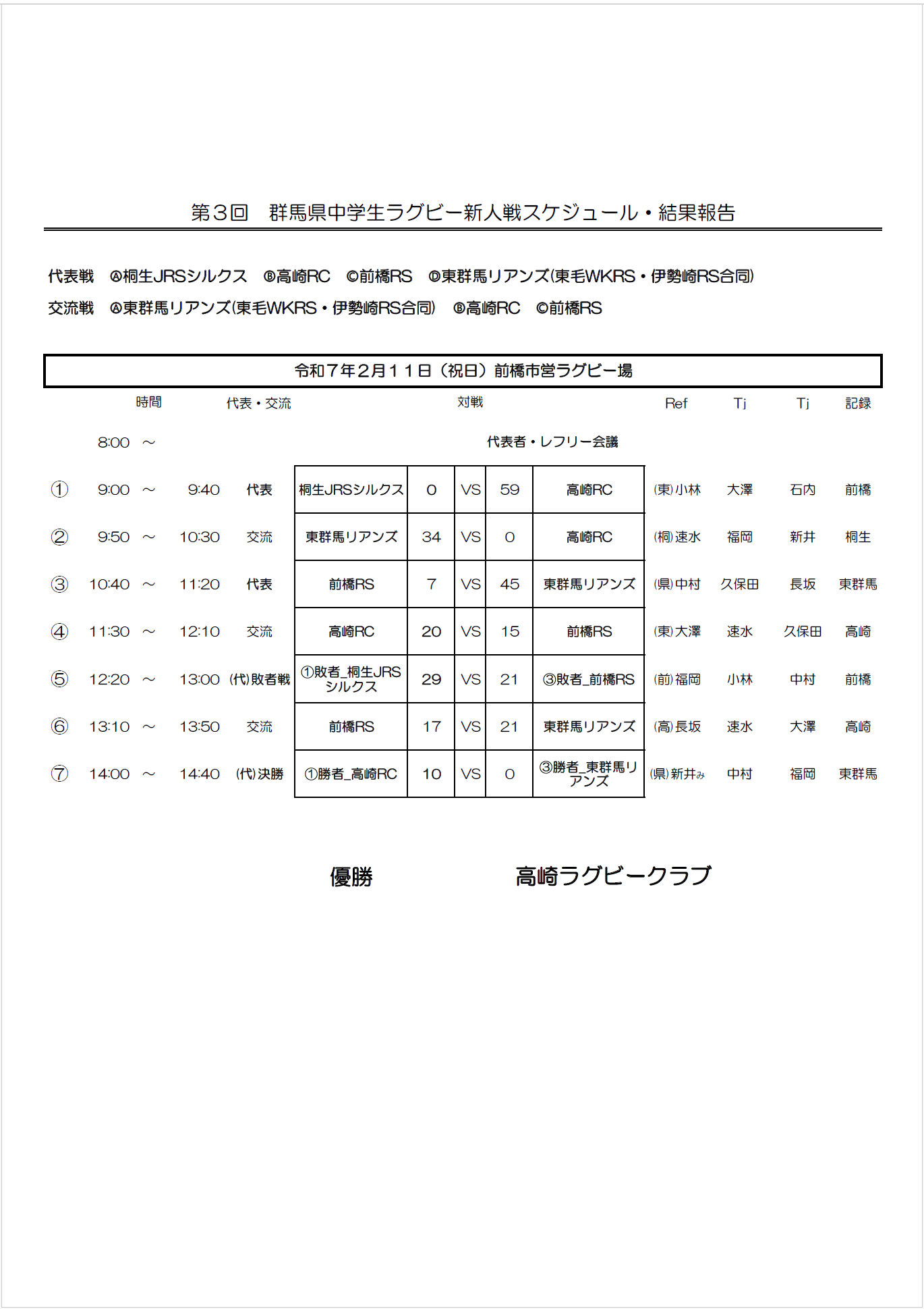 第3回 群馬県中学生ラグビー新人戦