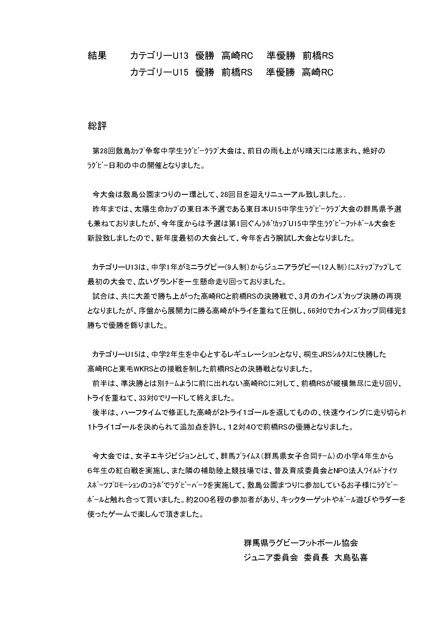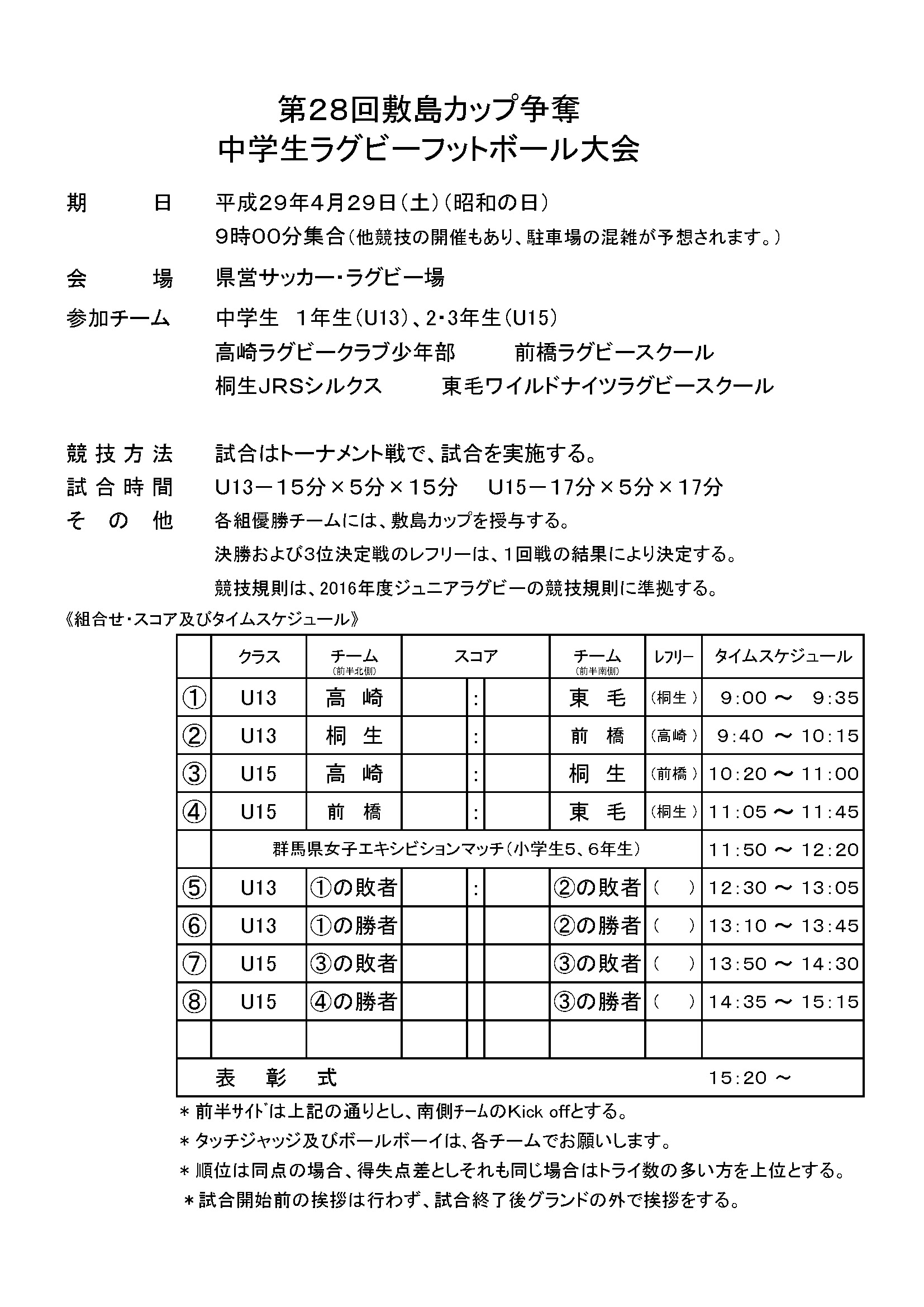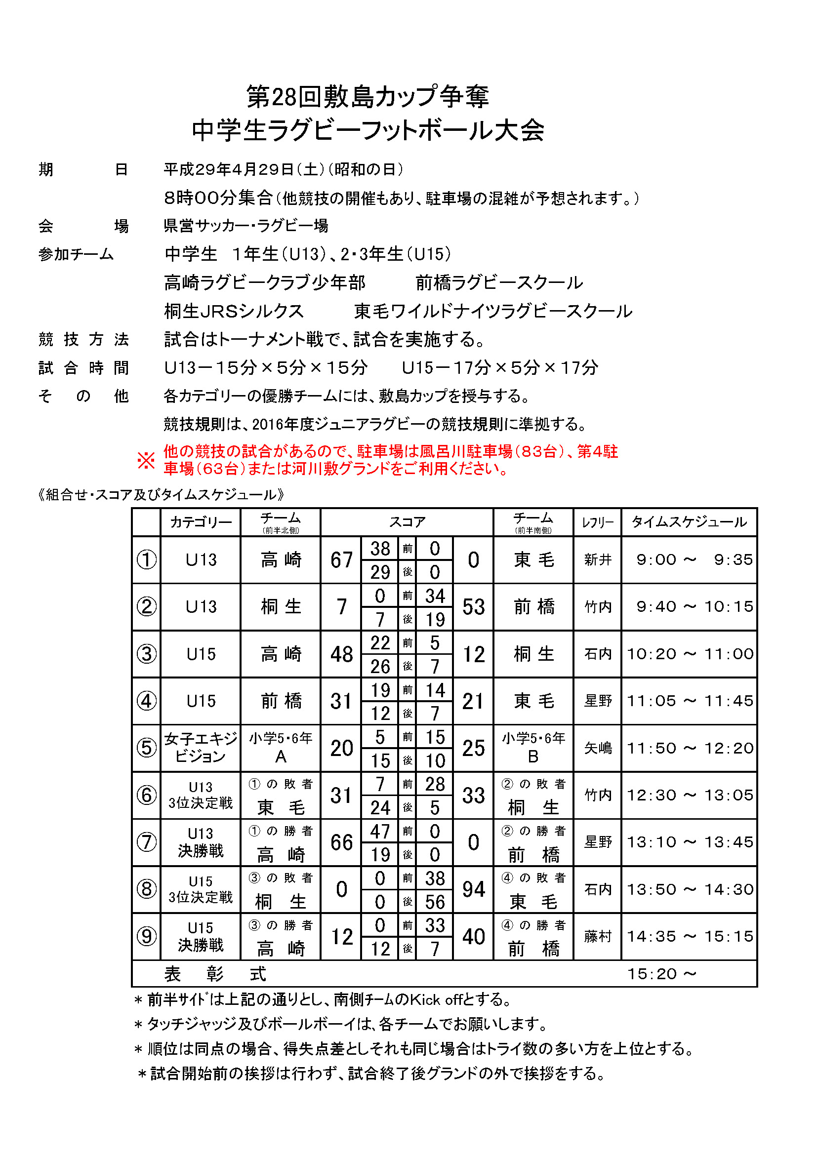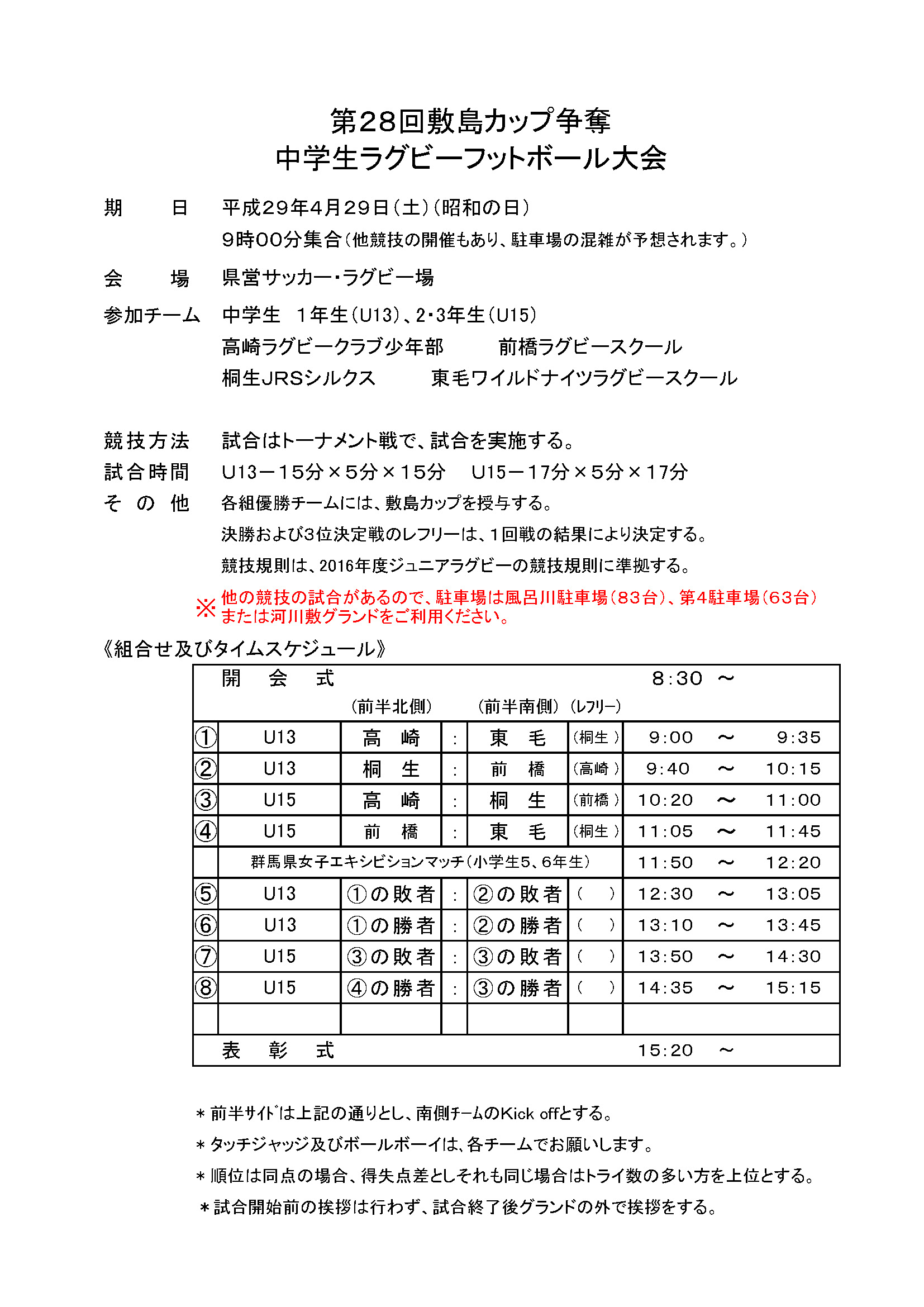 第28回敷島カップ争奪 中学生ラグビーフットボール大会