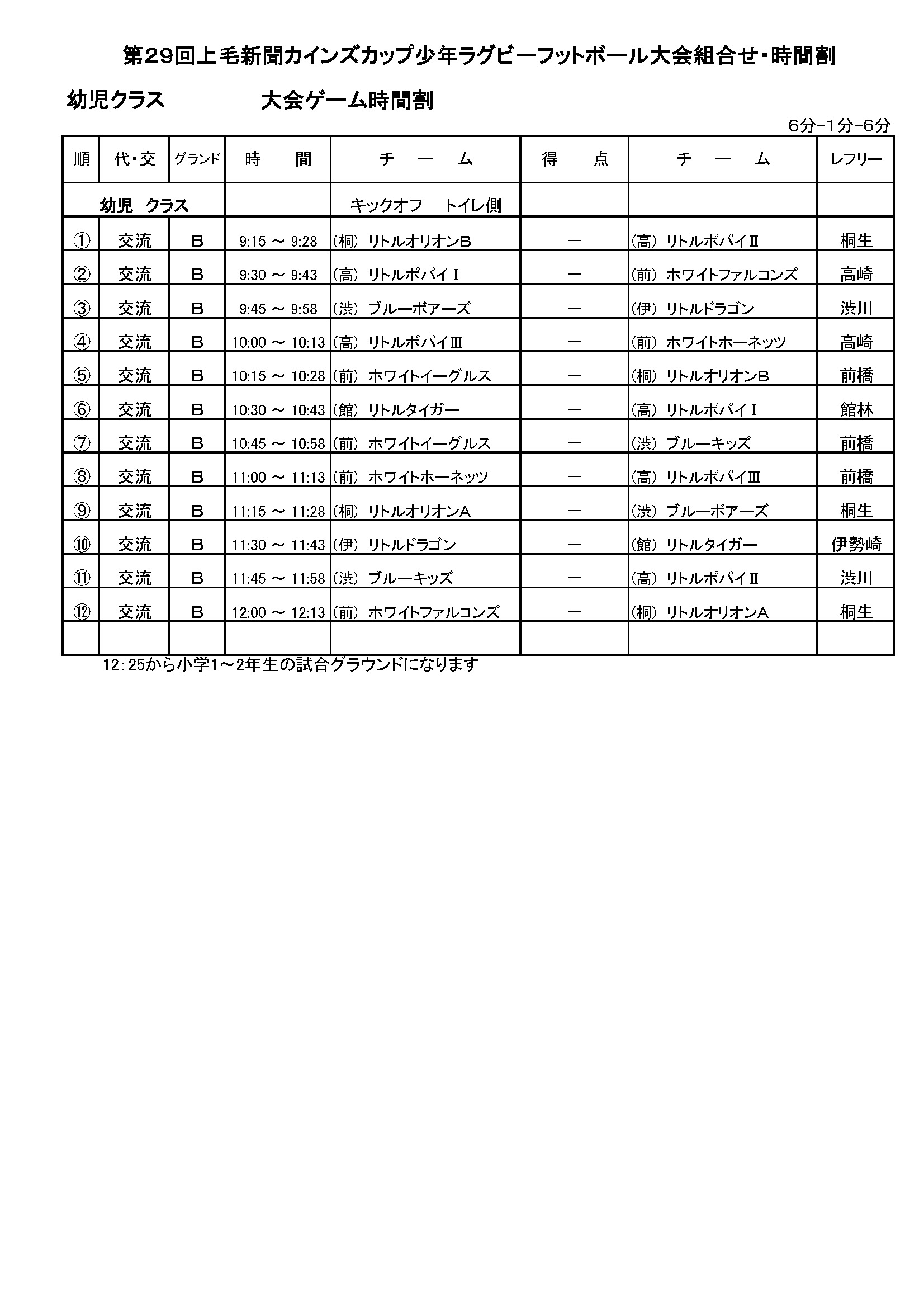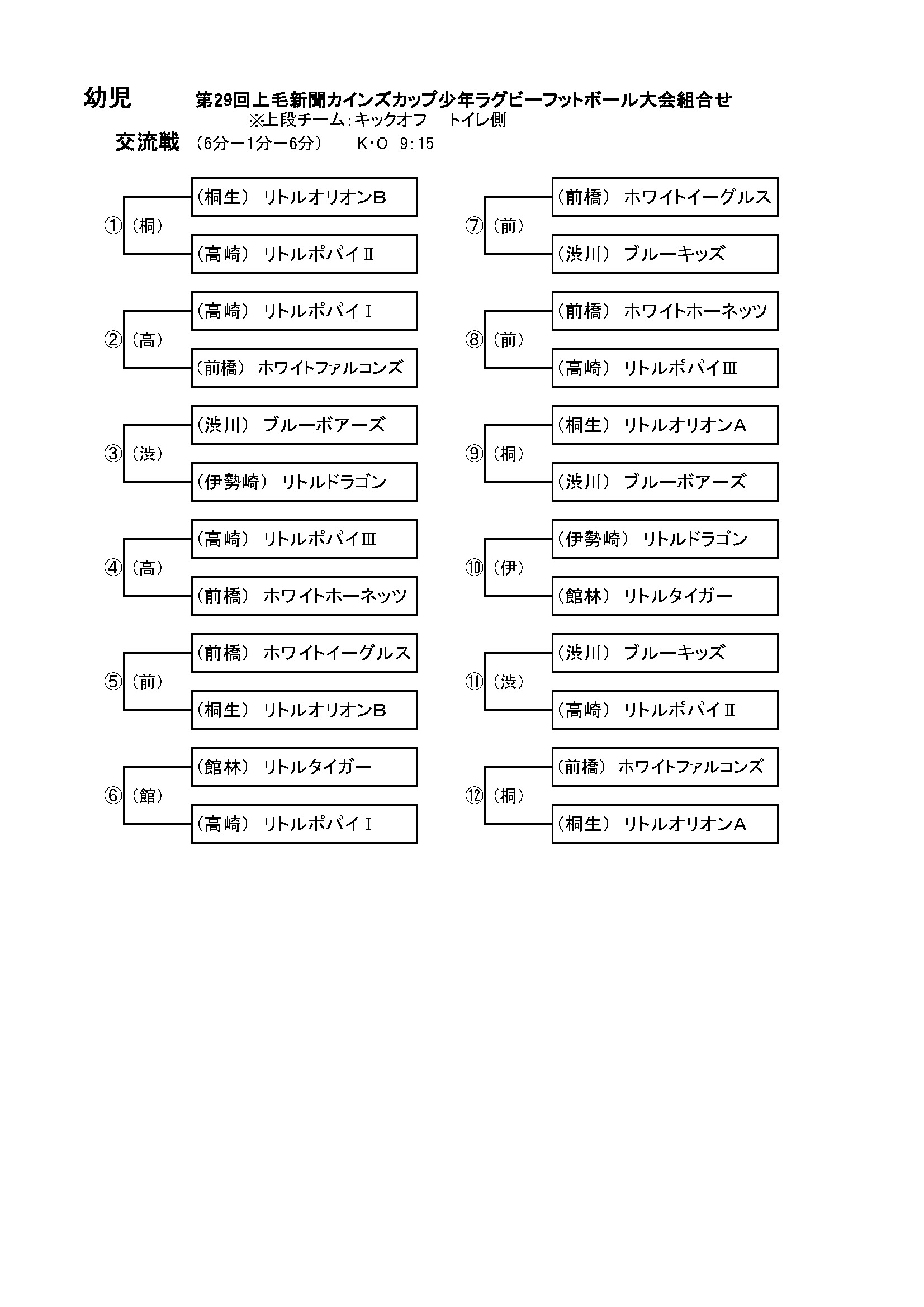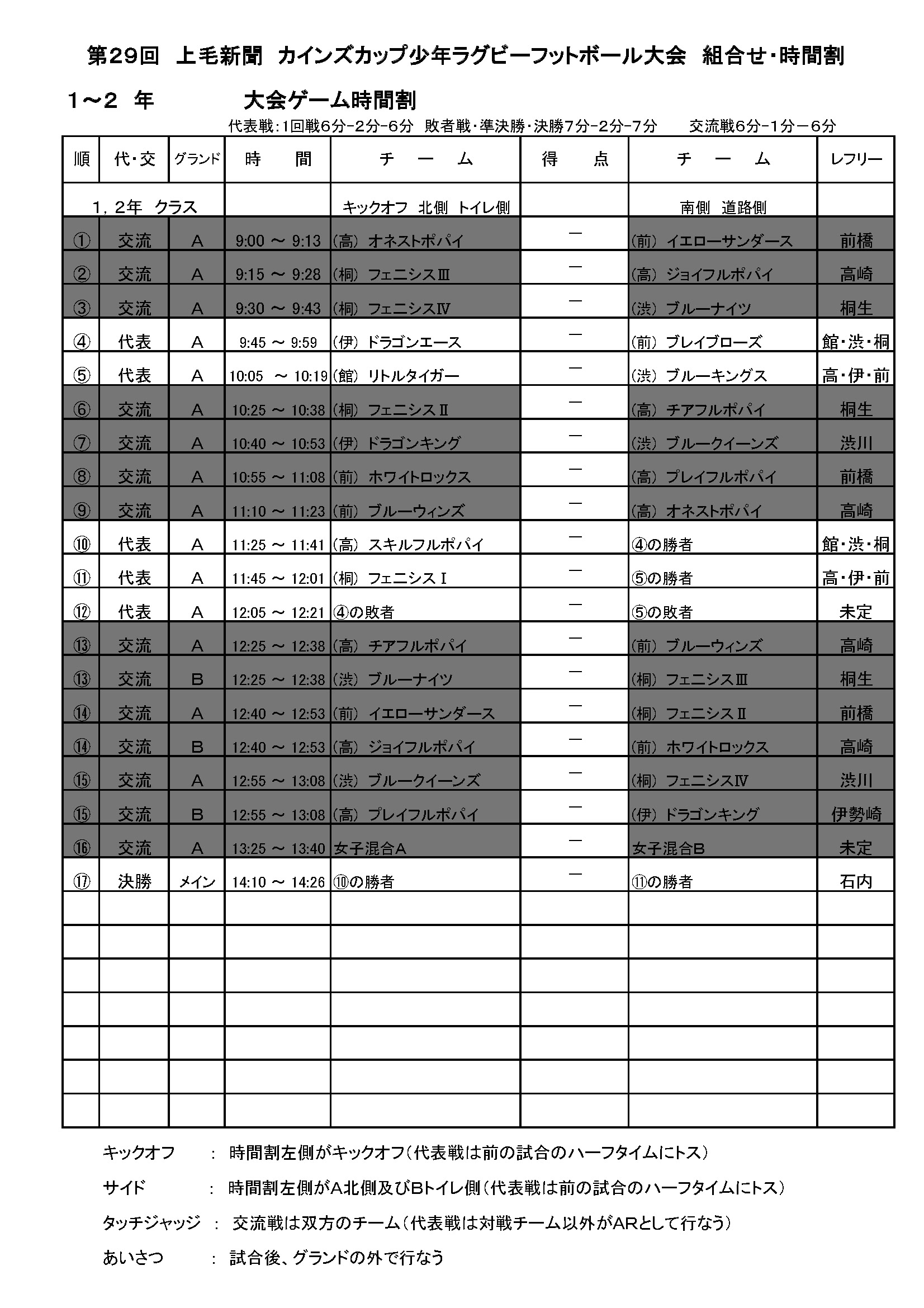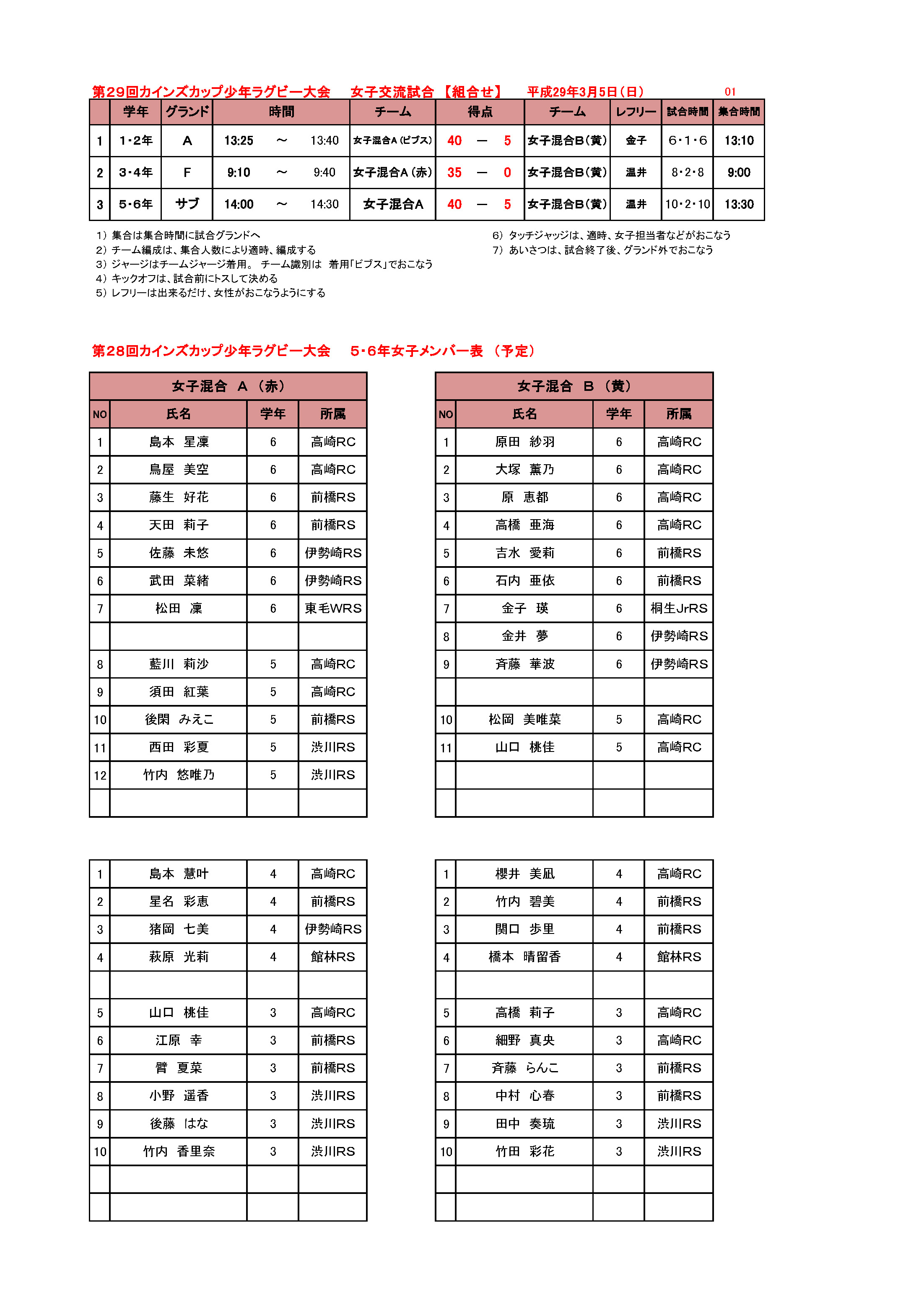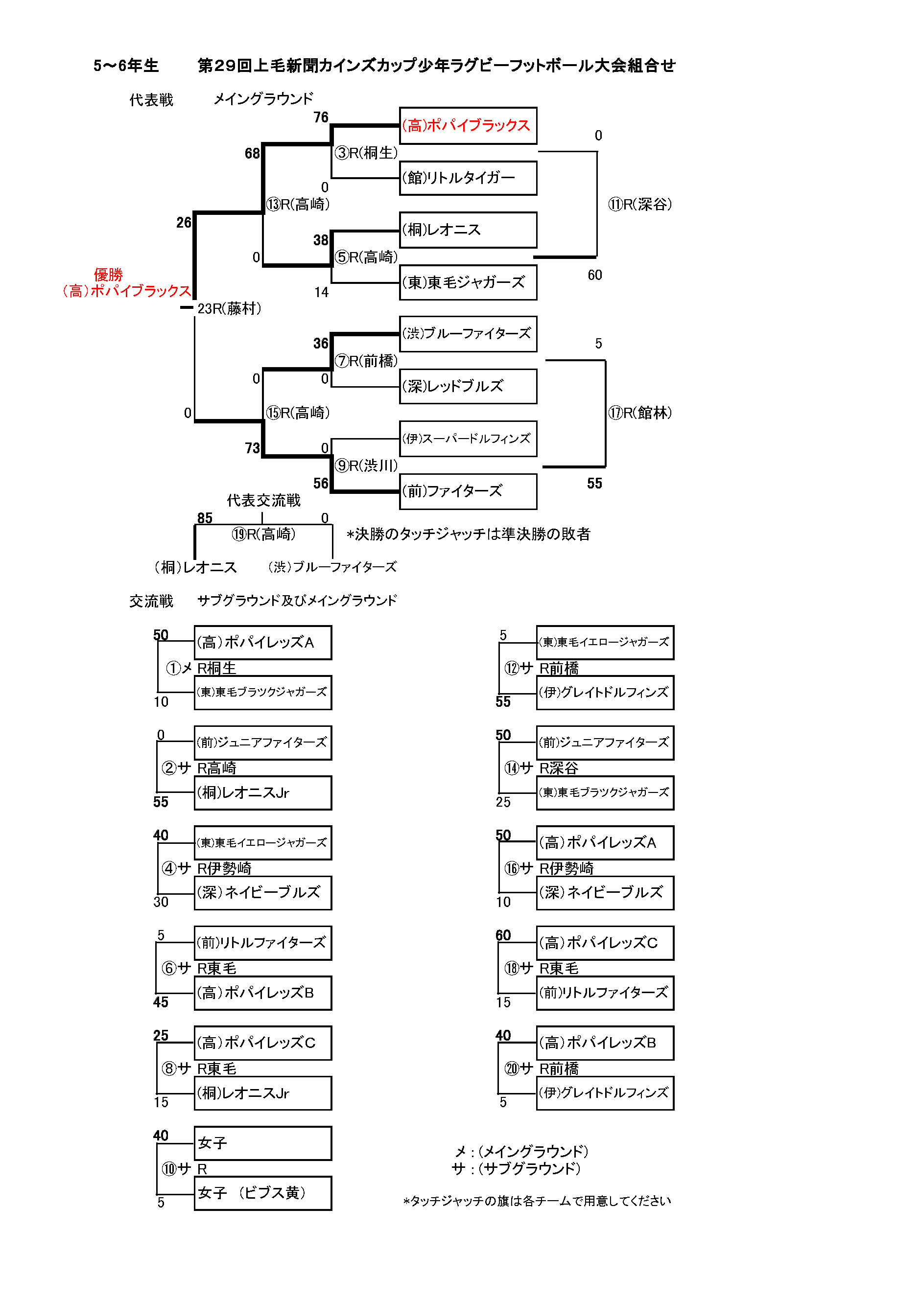 第29回 上毛新聞 カインズカップ少年ラグビーフットボール大会 試合結果 試合総評 5~6年生 3~4年生 1~2年生 女子交流戦 実施要領 実施要領 ファイル名 29thcainzcup.xls(Microsoft Excel Document) 実施要領詳細