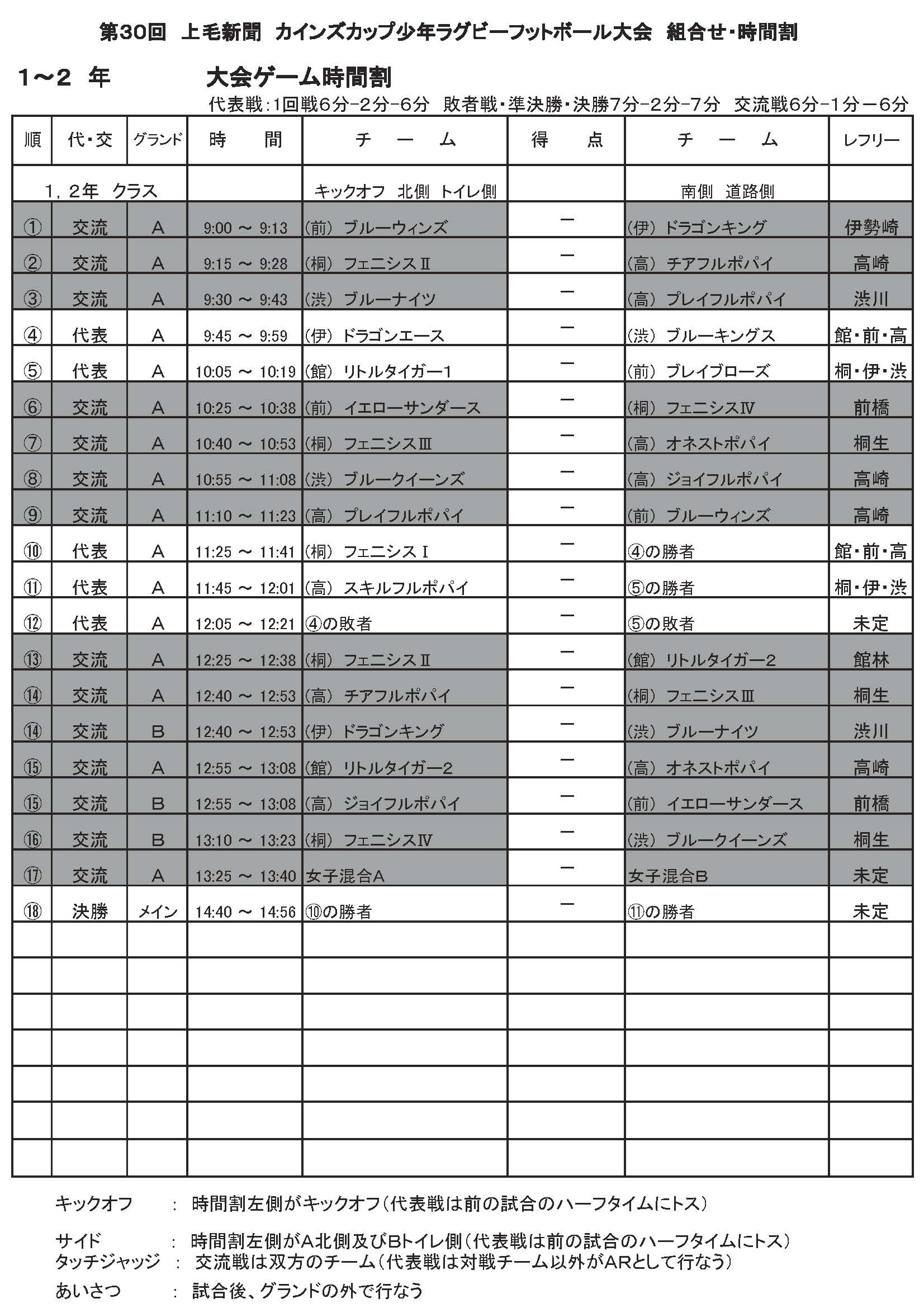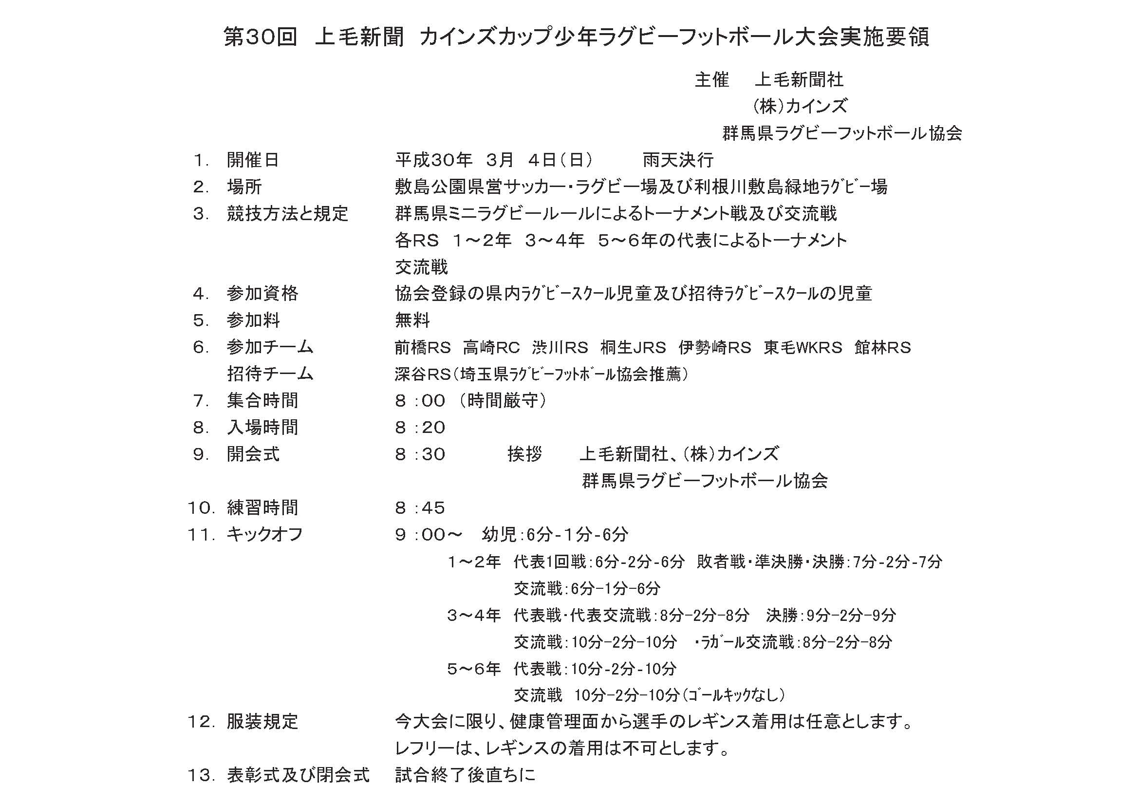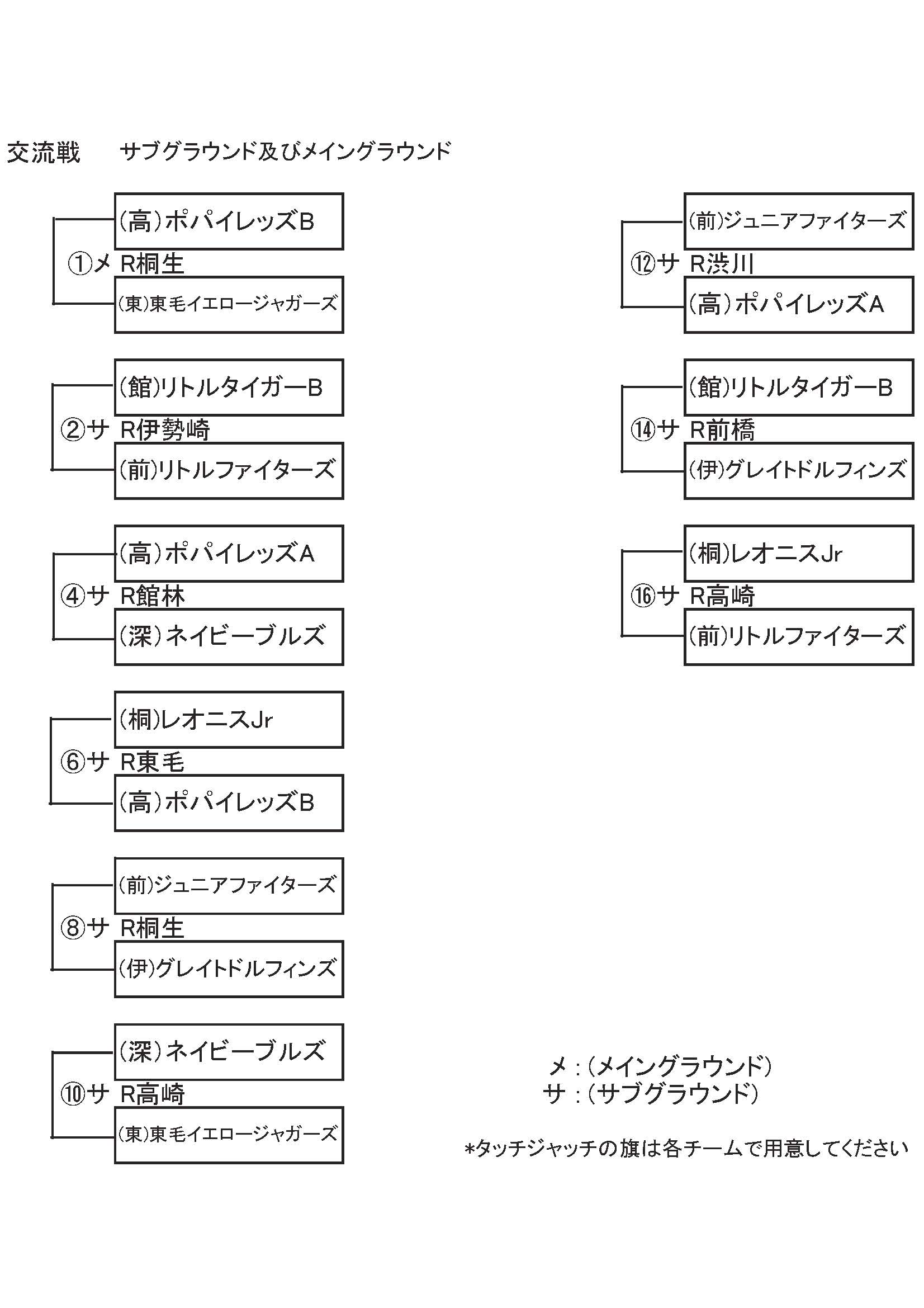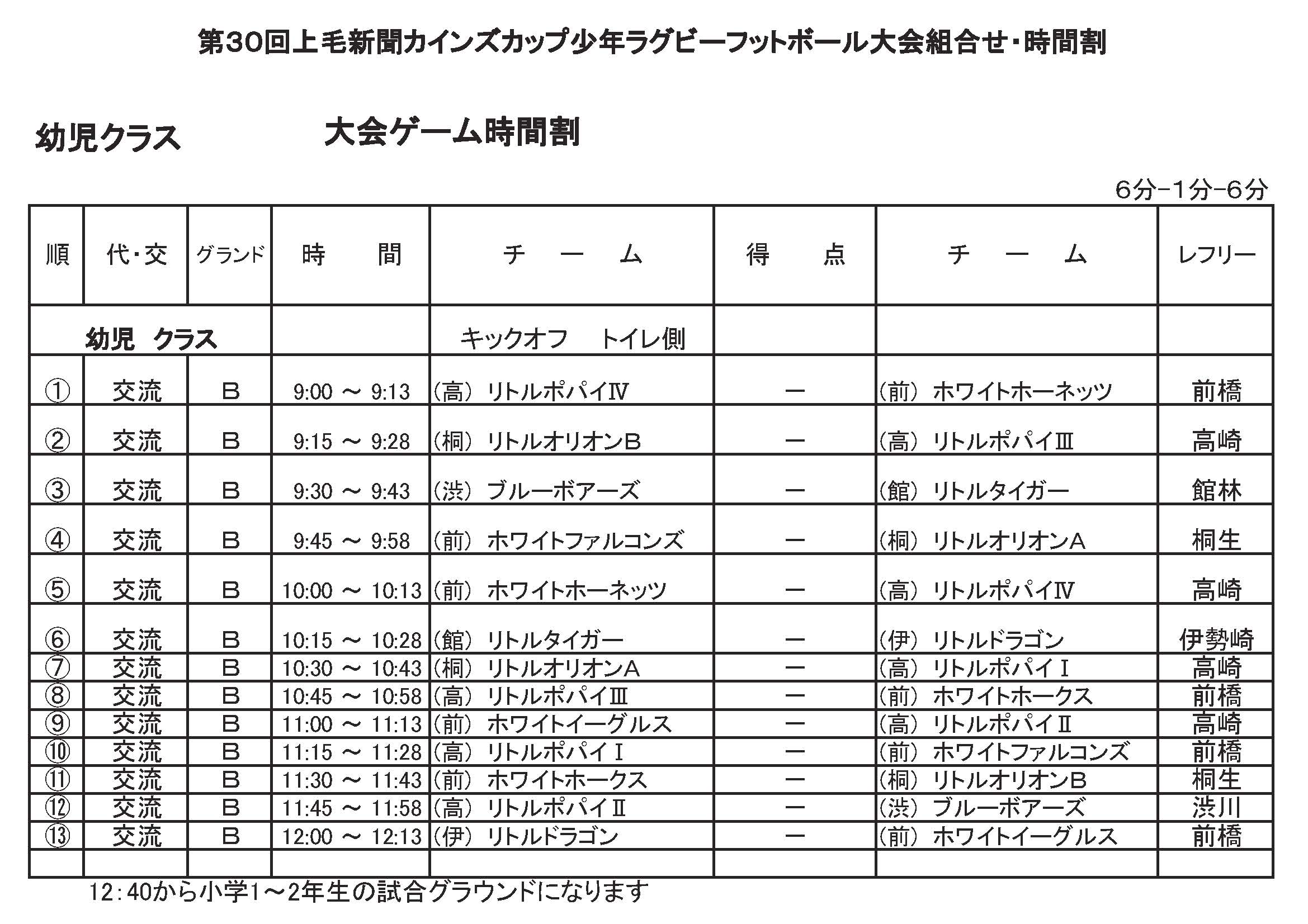 HOME 県協会とは お知らせ » ニュース ニュース一覧 試合結果 facebook » 公式 チケット販売 大学 委員会 » ジュニア 高校 大学 クラブ社会人 競技 コーチ 普及育成 総務 メディカル 安全対策 レフリー アセッサー 強化セレクション 競技場 チケット お問い合わせ 住所 電話 メール 第30回 上毛新聞 カインズカップ少年ラグビーフットボール大会 実施要領 5~6年生 交流戦 3~4年生 交流戦 1~2年生 交流戦 幼児 交流戦 組合せ・時間割 5~6年生 <3~4年生 1~2年生 幼児