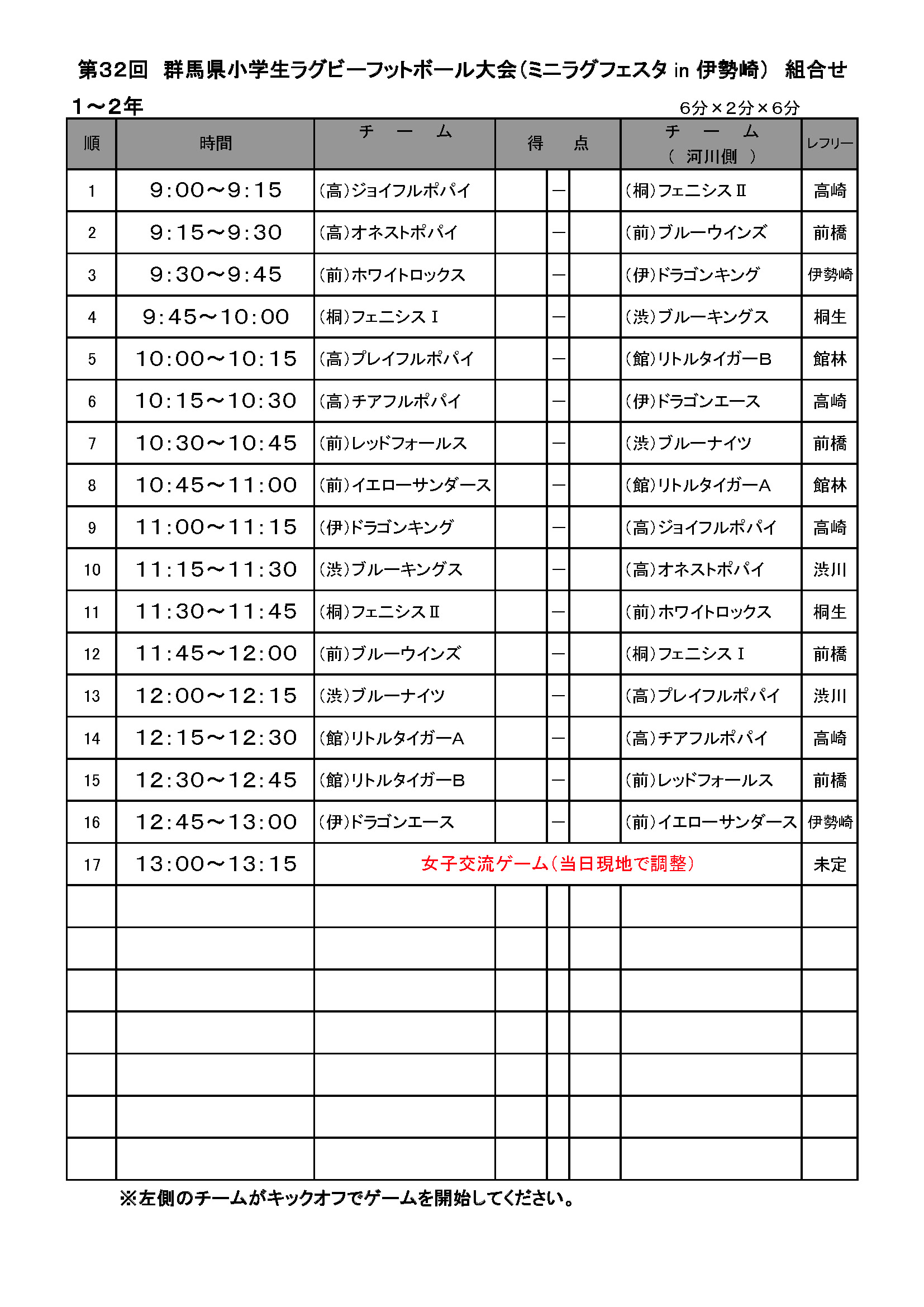HOME 県協会とは お知らせ » ニュース ニュース一覧 試合結果 facebook » 公式 チケット販売 大学 委員会 » ジュニア 高校 大学 クラブ社会人 競技 コーチ 普及育成 総務 メディカル 安全対策 レフリー アセッサー 強化セレクション 競技場 チケット お問い合わせ 住所 電話 メール 第32回群馬県小学生大会(ミニ・ラグフェスタ イン 伊勢崎) 実施要領 Microsoft Excel Document ファイル名 32th-mini-rug-festa-gunma-2018.xls(Microsoft Excel Document) 駐車場 Adobe Acrobat ファイル名 32th-mini-rug-festa-gunma-2018-ground.pdf(Adobe Acrobat) 実施要領 人数 組合せ表 駐車場