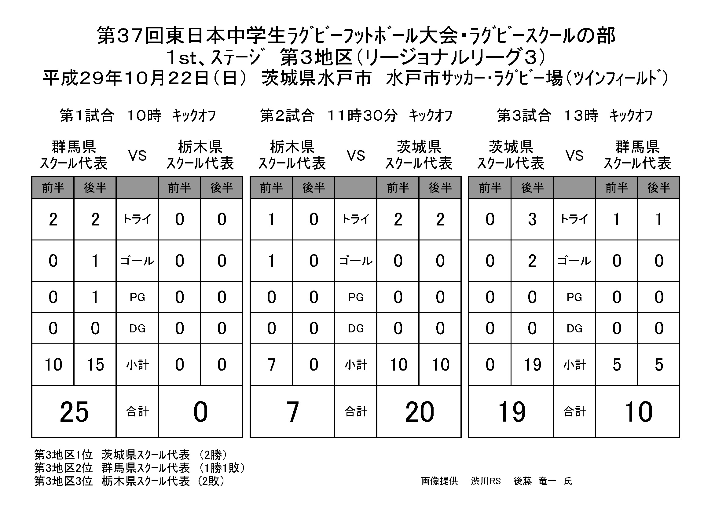 第37回東日本中学生ラグビーフットボール大会・ラグビースクールの部1st、ステージ 第3地区(リージョナルリーグ3)