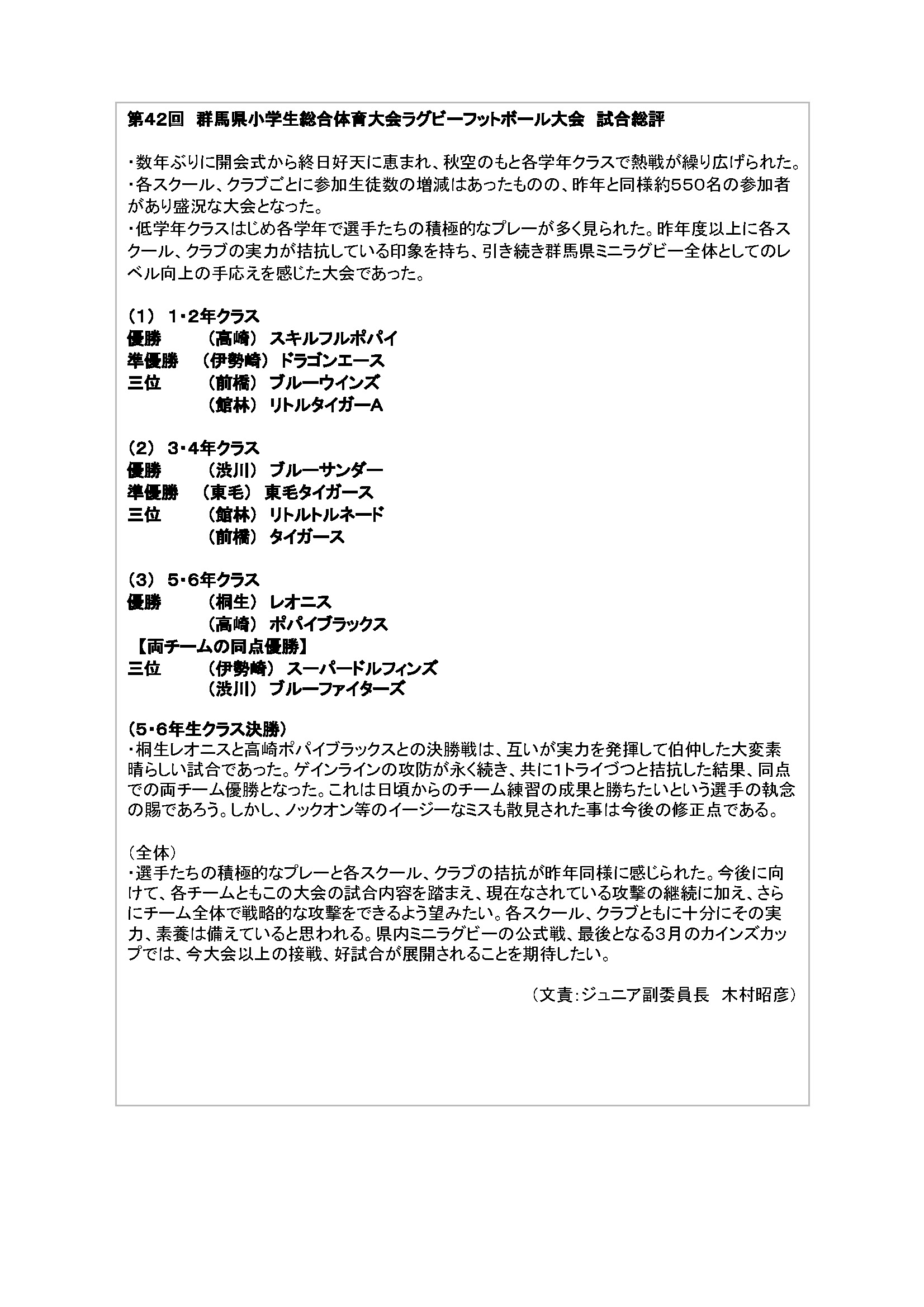 第42回 群馬県小学生総合体育大会ラグビーフットボール大会