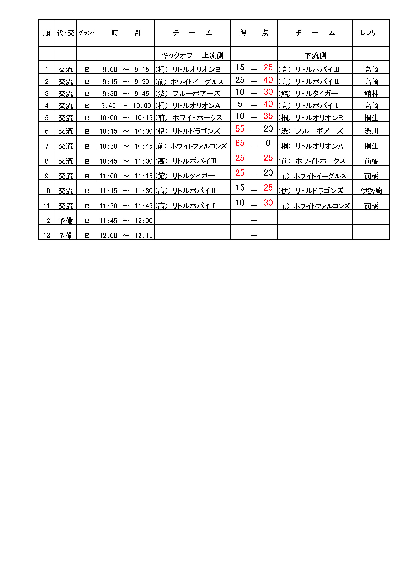 女子交流試合組合わせ
