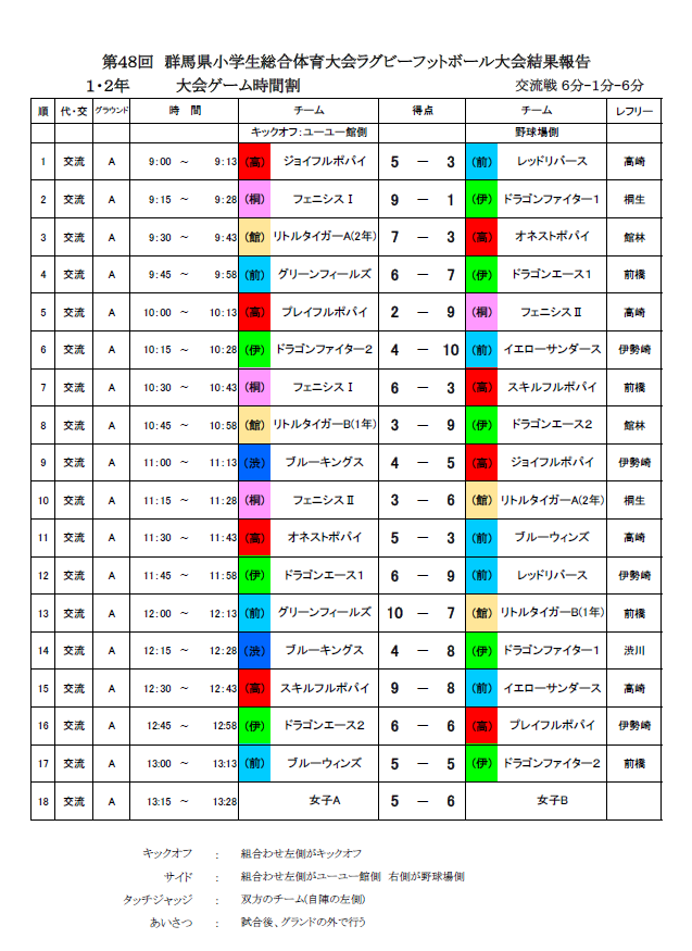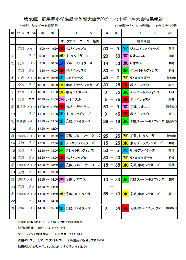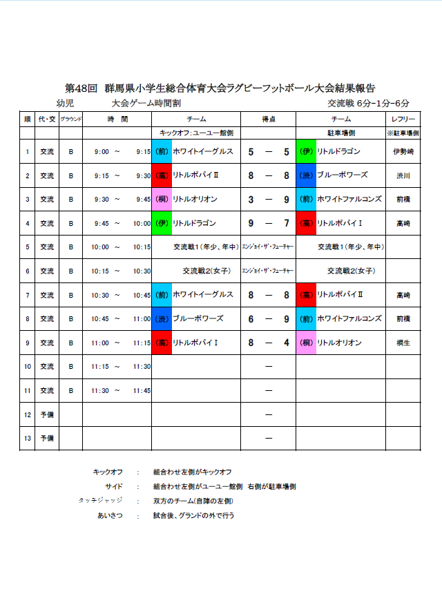 第48回 群馬県小学生総合体育大会ラグビーフットボール大会