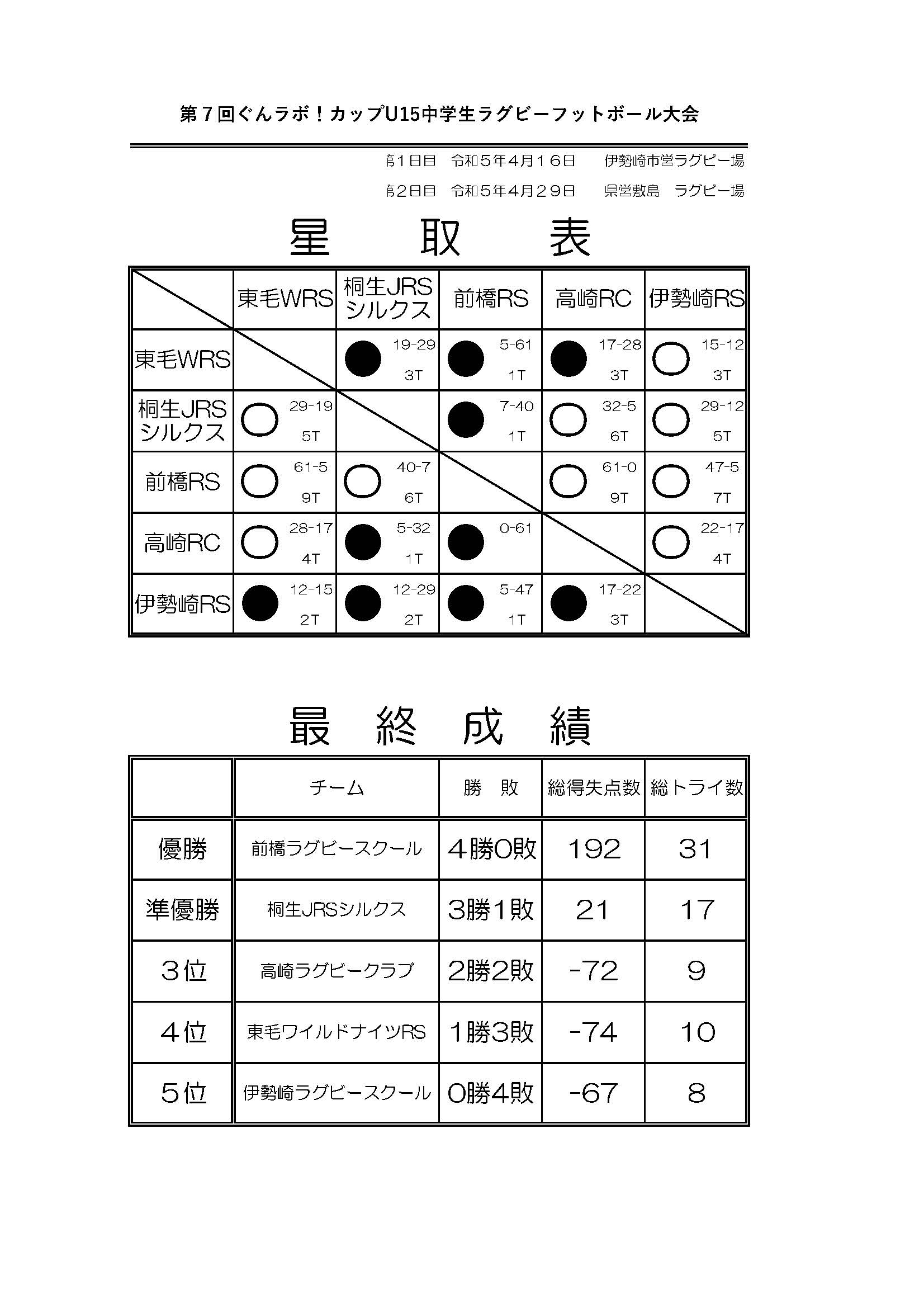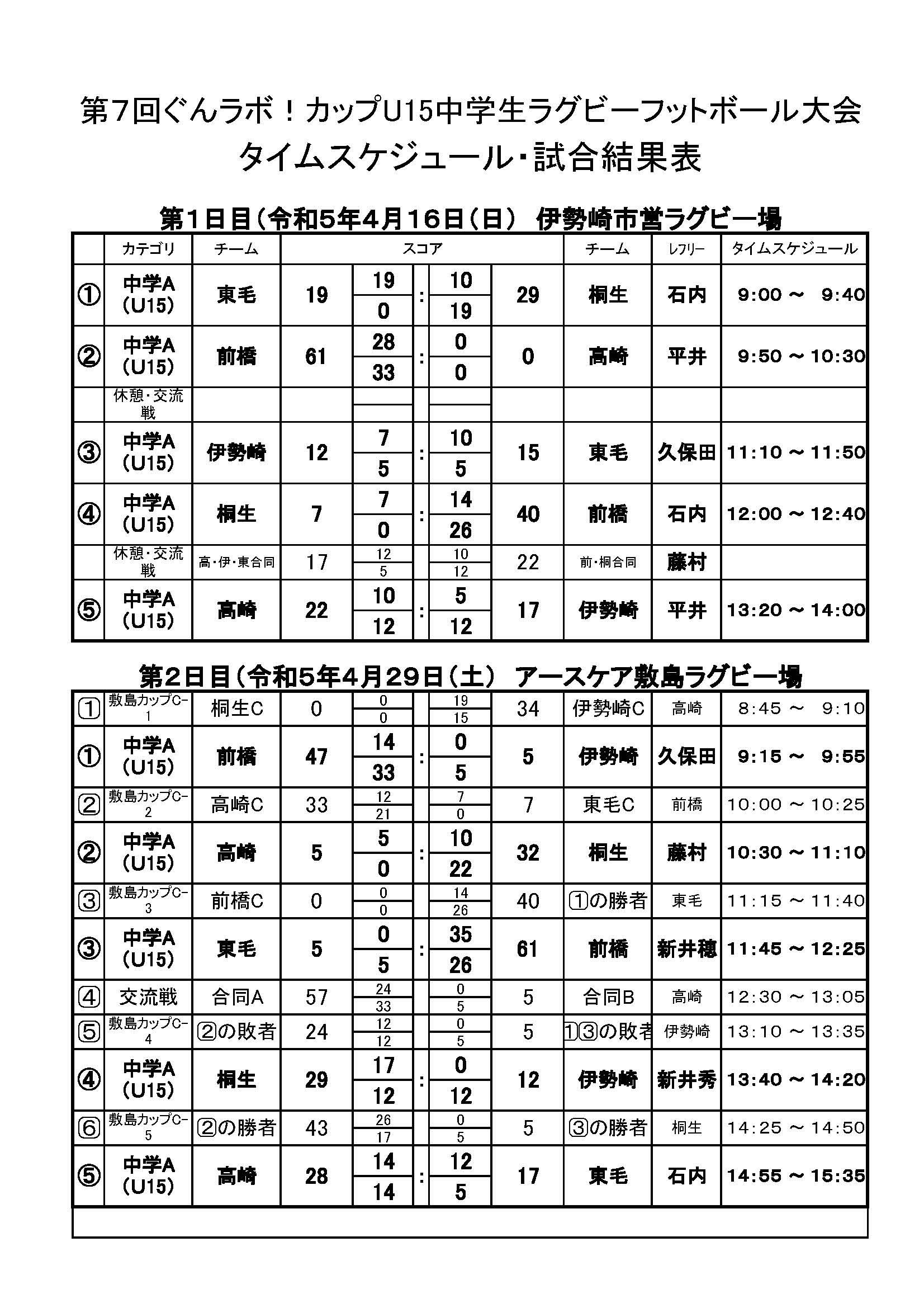 試合結果表